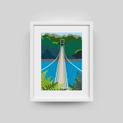 The Other Tongariro Crossing captures the Red Hut Swing Bridge stretching across the Tongariro River, framed by ferns in the foreground. The clear blue water and brilliant bluebird sky make this classic Turangi spot one you can’t help but pause and take in.
