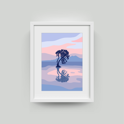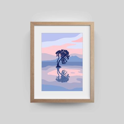 That Taupo Tree celebrates a lone tree standing strong by the lake, captured in a clean, graphic style. Its simple shapes and colours highlight the quiet beauty of Taupo’s landscape, a reminder of nature’s calm and presence.