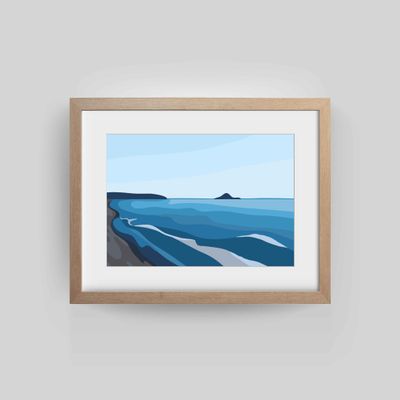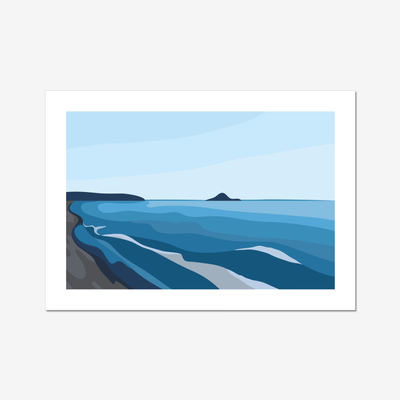 Ohope Blue is a contemporary, simplified view of Ōhope Beach — calm blue sky above, gentle blue water below, and Whale Island sitting quietly on the horizon. This piece captures the easy, sun-soaked feel of a perfect day at Ōhope, looking toward the West End. Minimal and modern, it’s a soft slice of summer designed to lift any space with coastal calm.