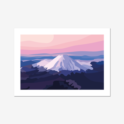 Whispers of Ngauruhoe captures the quiet strength of the snowcapped peak as it rises into a sky washed with pink and purple hues. The deep navy silhouette of the mountain contrasts with the soft evening light, an atmospheric moment where stillness speaks volumes.