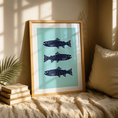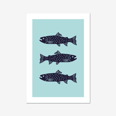 Follow the Rainbow brings a fresh take on the beauty of trout, captured in a bold, graphic style. The layered composition and soft colour palette create a sense of flow and harmony, with a nod to the fisherman chasing that rainbow trout.