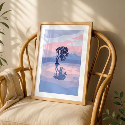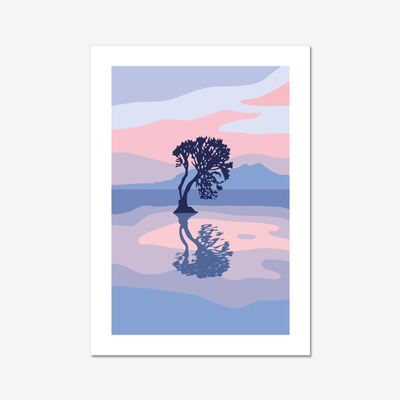 That Taupo Tree celebrates a lone tree standing strong by the lake, captured in a clean, graphic style. Its simple shapes and colours highlight the quiet beauty of Taupo’s landscape, a reminder of nature’s calm and presence.