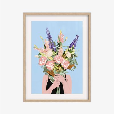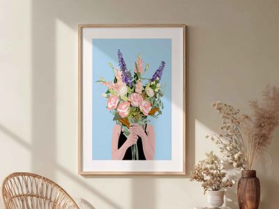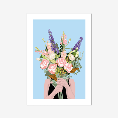 A bold, graphic piece, Flower Face balances femininity and mystery, with layered florals creating texture, movement, and a sense of quiet storytelling.