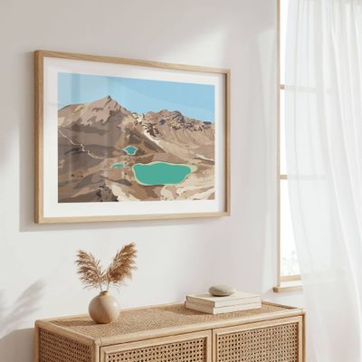 A vibrant and atmospheric piece, Emerald Lakes captures the striking beauty and energy of this iconic landscape of the Tongariro Crossing. Rich tones and layered forms create depth and movement, drawing the eye through the scene and evoking a sense of adventure and openness.