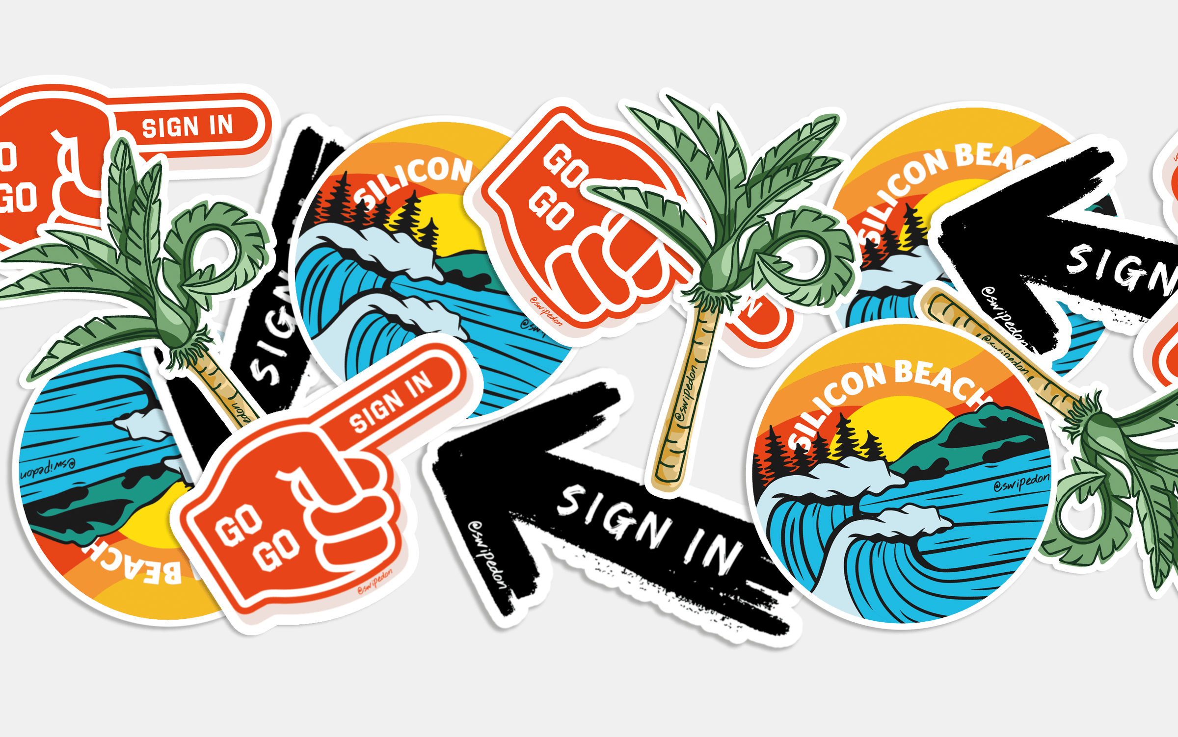 We’ve had a lot of fun creating illustrations, stickers, product books, screensavers, neon signs, t-shirts, wall graphics, and social content that showcase the world-class brand of SwipedOn.