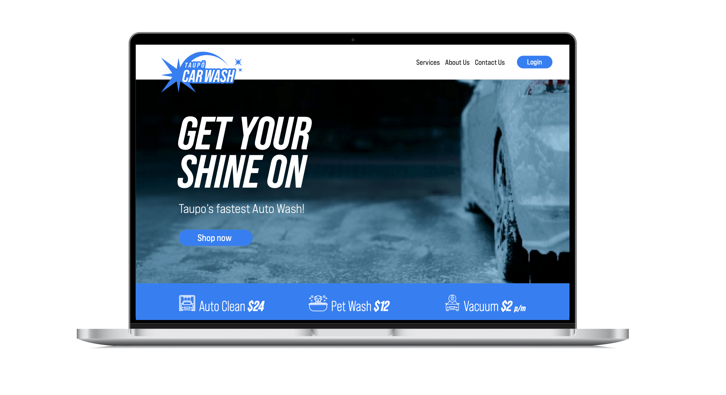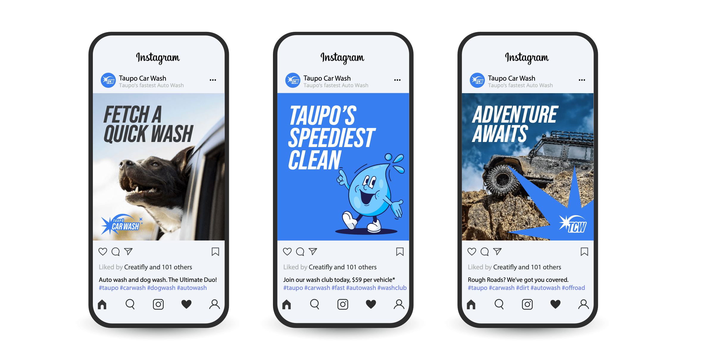 The team at Taupo Car Wash wanted a fresh, eye-catching look for their prime spot next to NPD. They needed a brand that stood out, using a bold blue palette that felt modern, clean, and full of energy.
